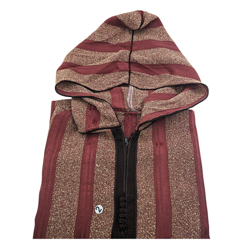Djellaba avec capuchon Moussa beige rouge T 2